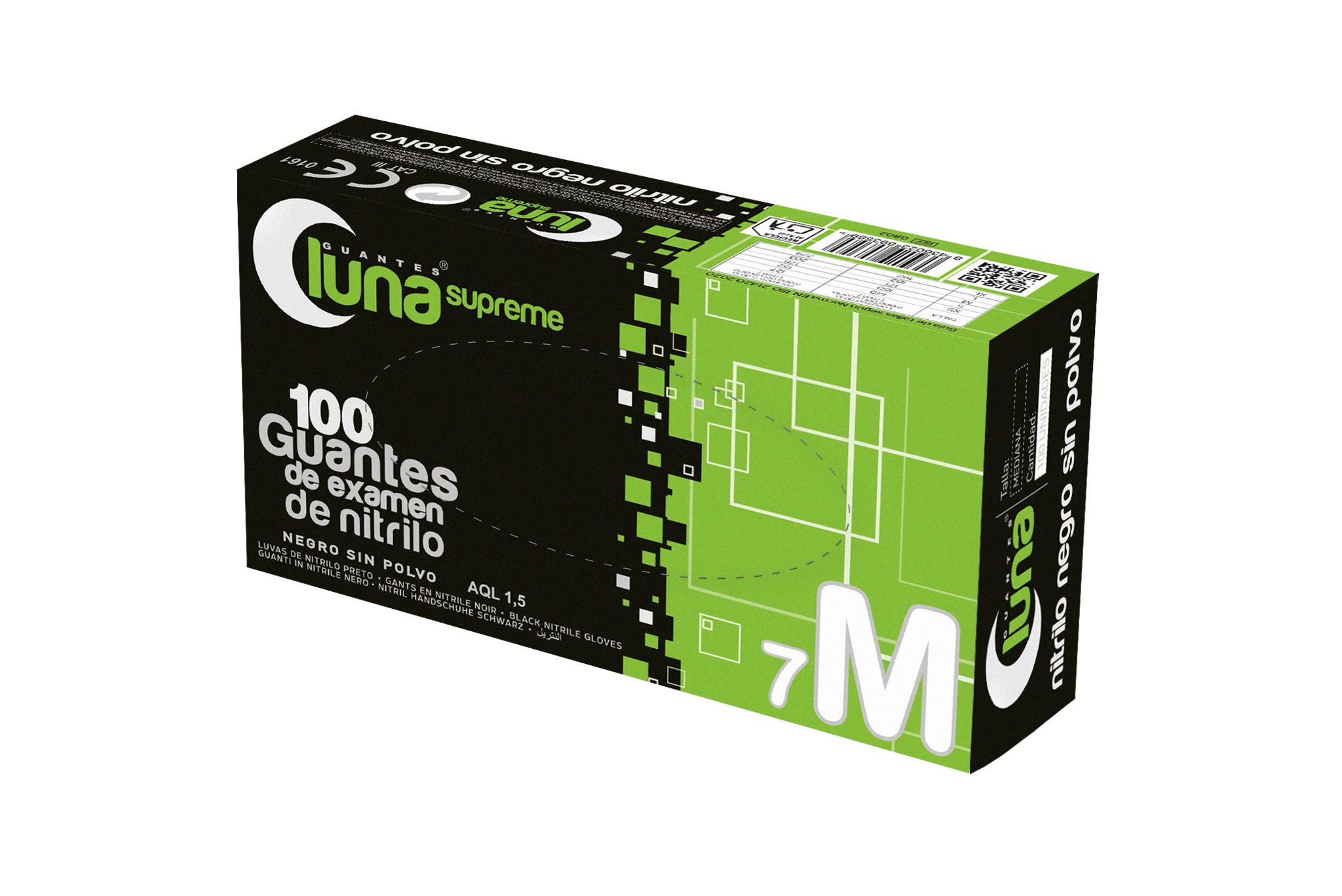 GUANTE de examen SUPREME DE NITRILO NEGRO SIN POLVO LUNA