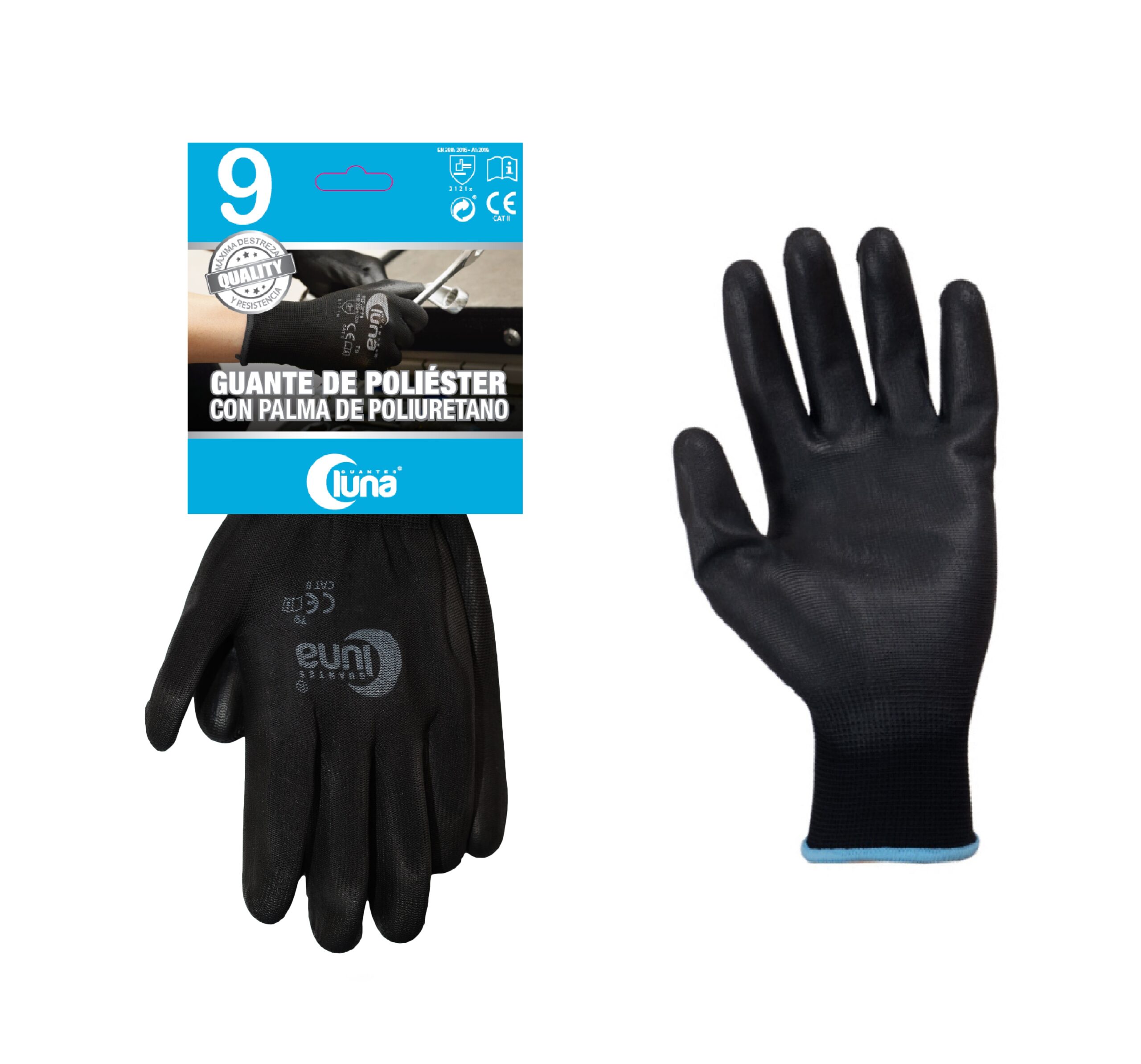 • Guante con soporte de  poliéster con la palma recubierta de poliuretano en color negro
